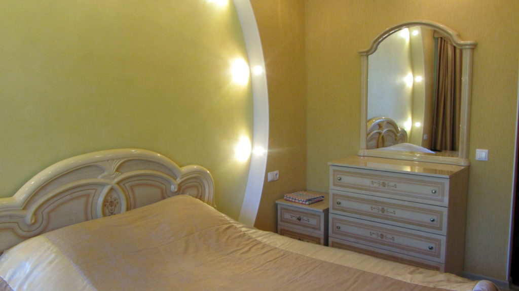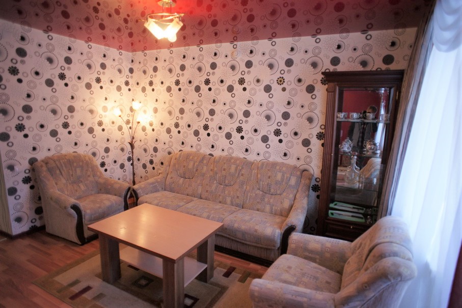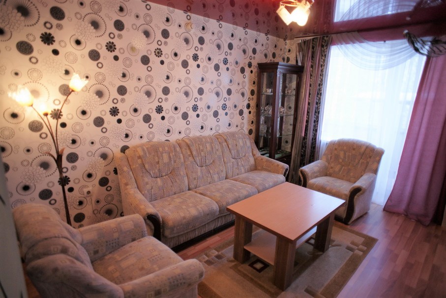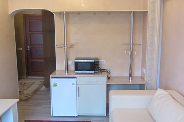 Площадь номера - 32 кв.м. 2 осн. места. 2 доп. места. Балкон. Мебель: вешалка, диван раскладной, зеркало, кровать двуспальная, кухонная мебель, прикроватные тумбочки, стол, стулья, шкаф. Мини-кухня. Оборудование: микроволновая печь, набор посуды, телевизор ЖК, холодильник, электрочайник. Санузел: с душевой кабиной, туалетные принадлежности, фен. Сервис: Wi-Fi бесплатно, смена полотенец (по требованию), смена постельного белья (1 раз в неделю), уборка номера (ежедневно).